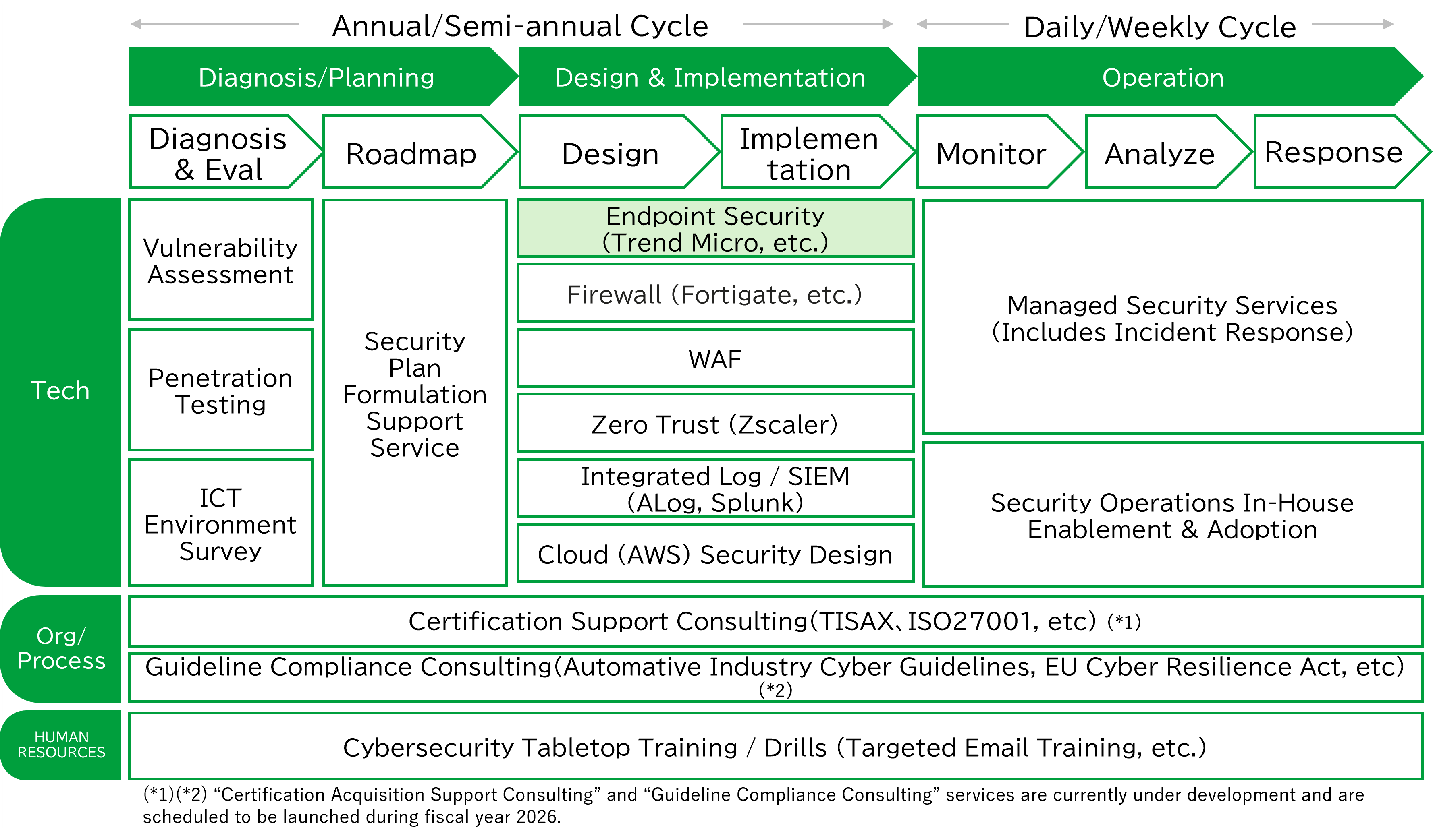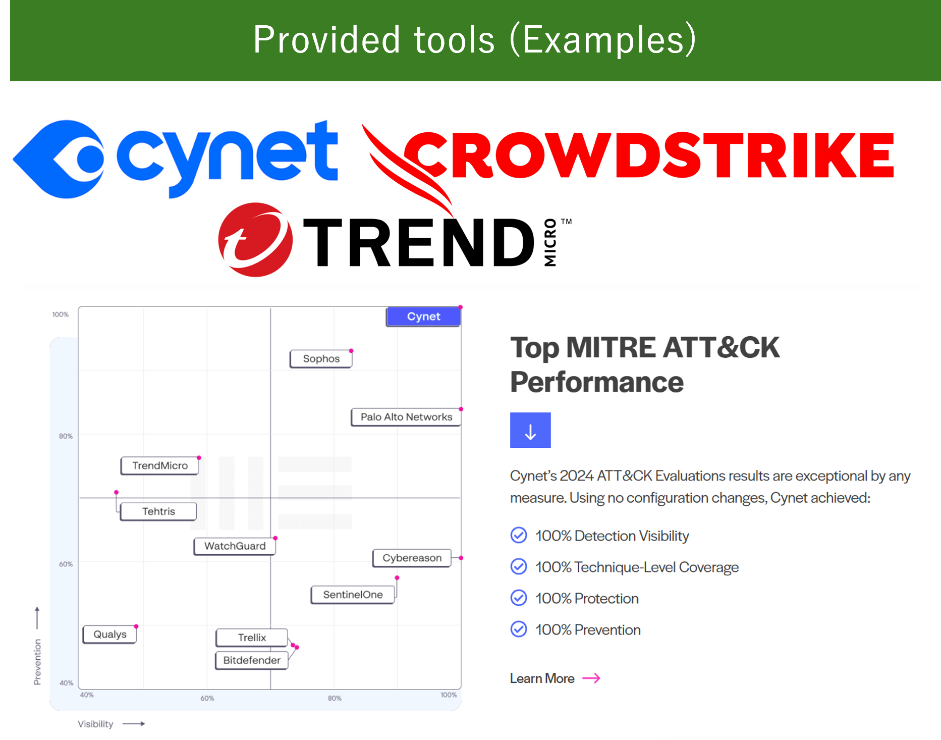We offer not only widely adopted products but also a diverse selection of solutions with advanced security capabilities. Our offerings focus on products that receive high evaluations in the annual endpoint assessments published by MITRE ATT&CK.