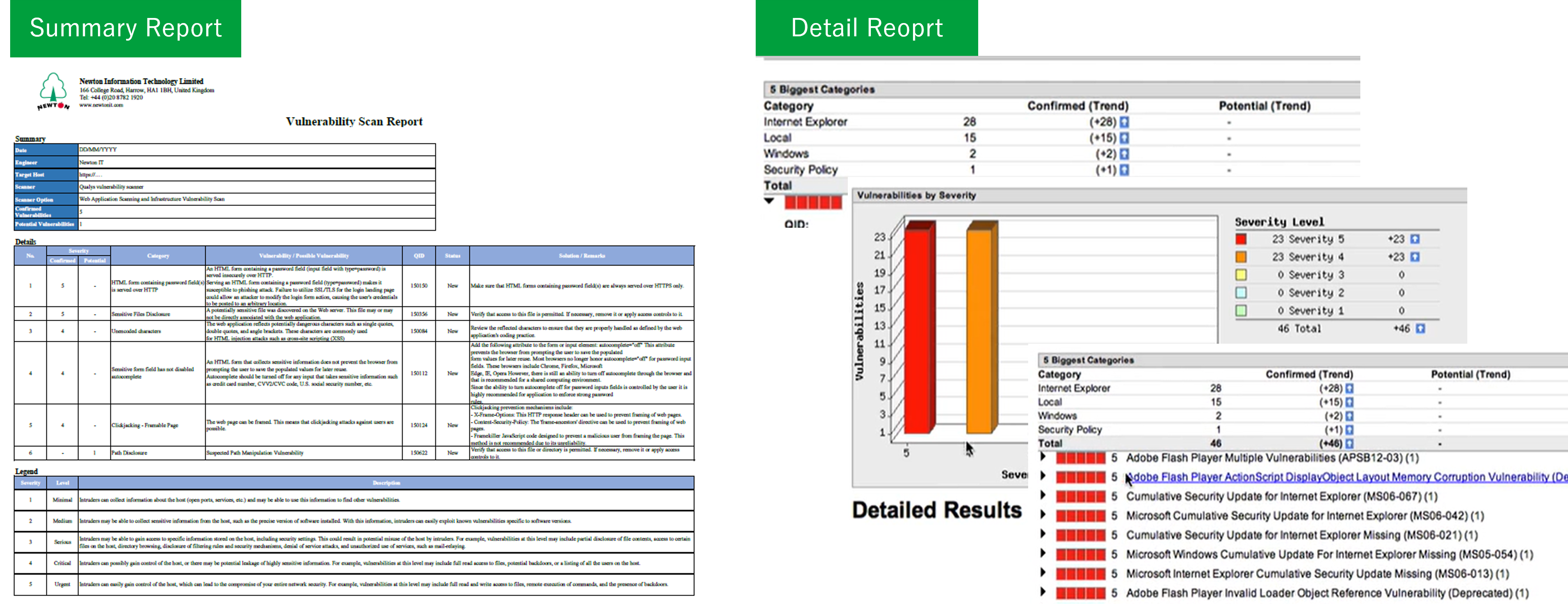 As deliverables of the vulnerability assessment, we provide two types of reports:- A summary report for management and stakeholders to use for reporting purposes