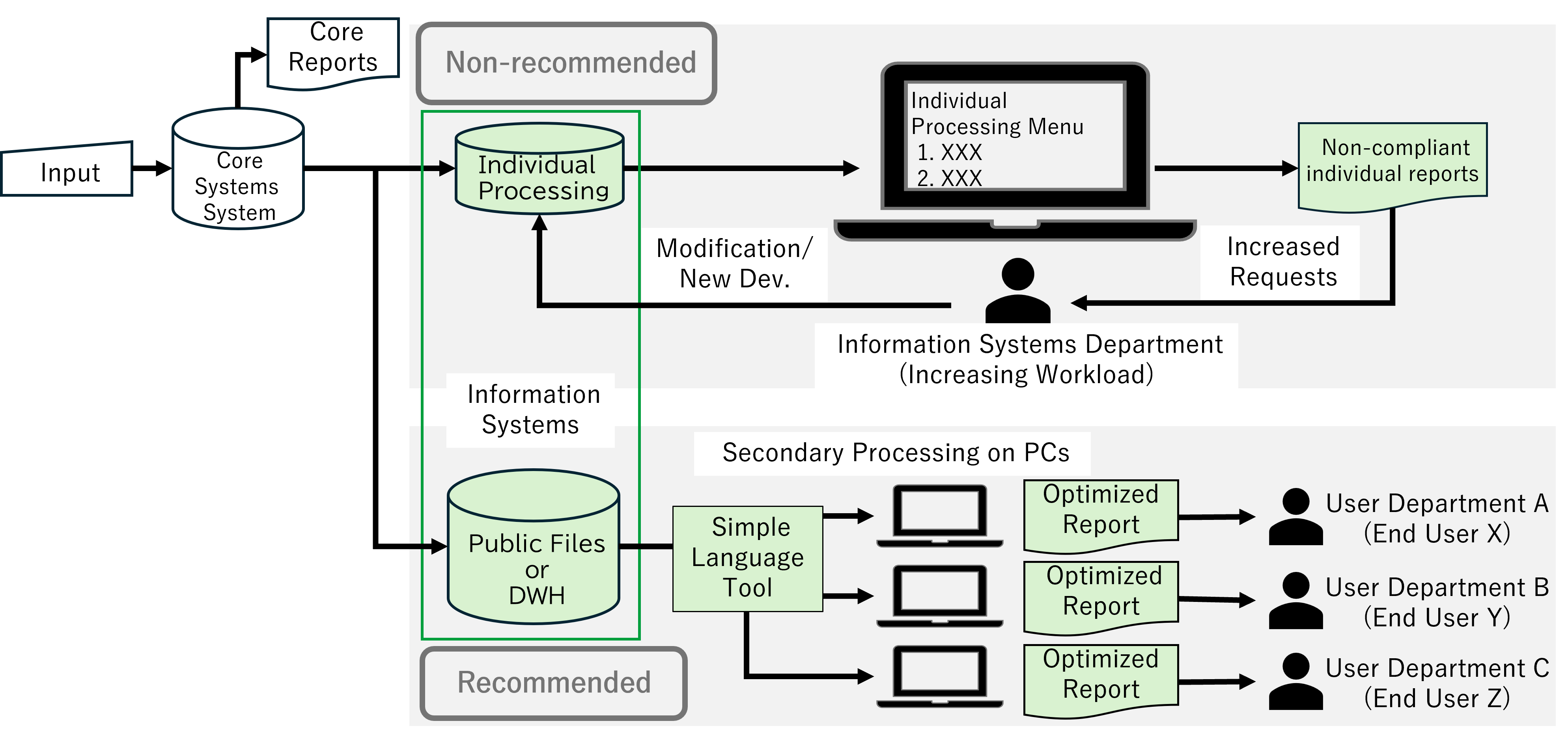 By combining the EUD approach with a data warehouse architecture, organisations can reduce their dependence on IT departments and external vendors for regulatory responses and report creation.This not only improves response speed, but also helps eliminate development wait times and reduce coordination and implementation costs.
