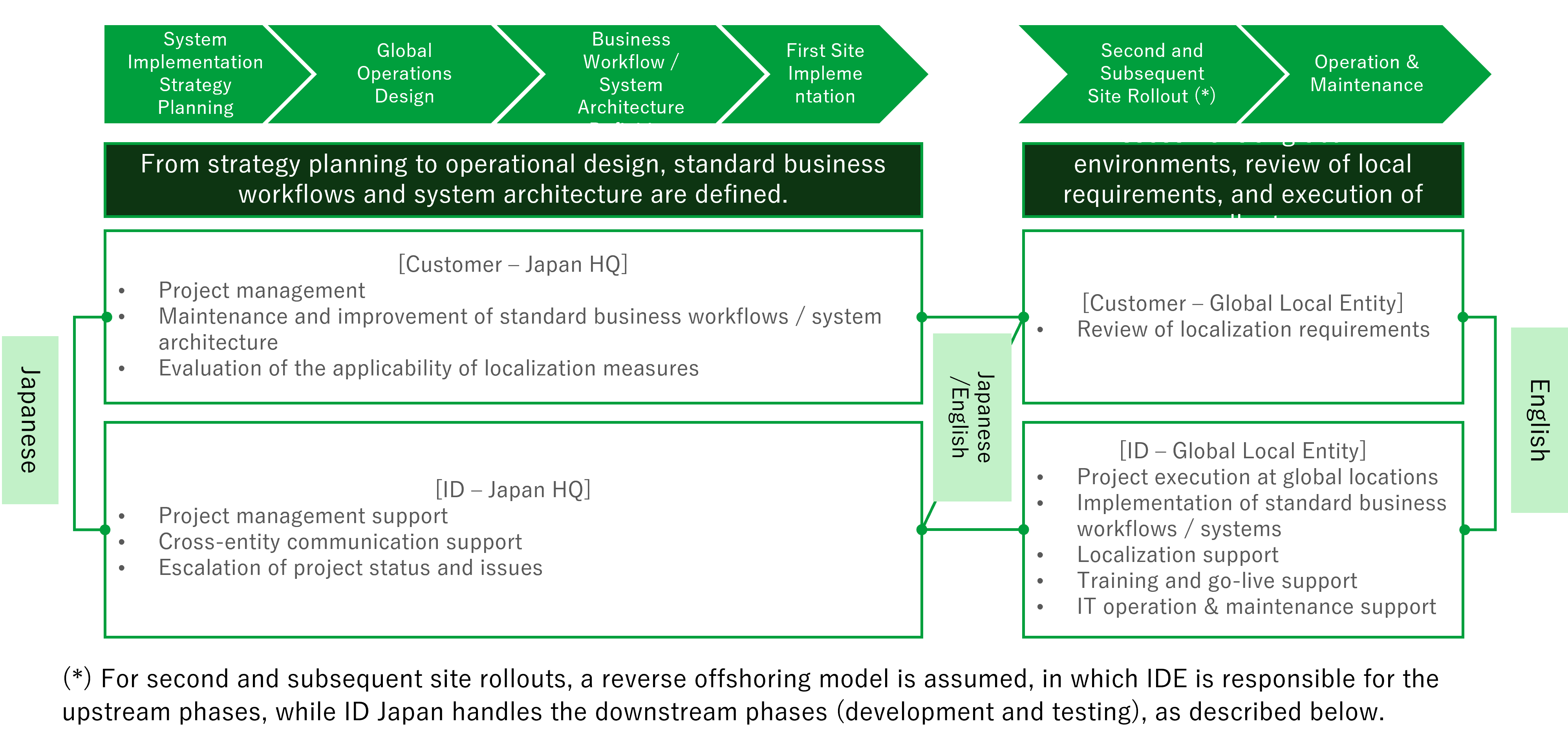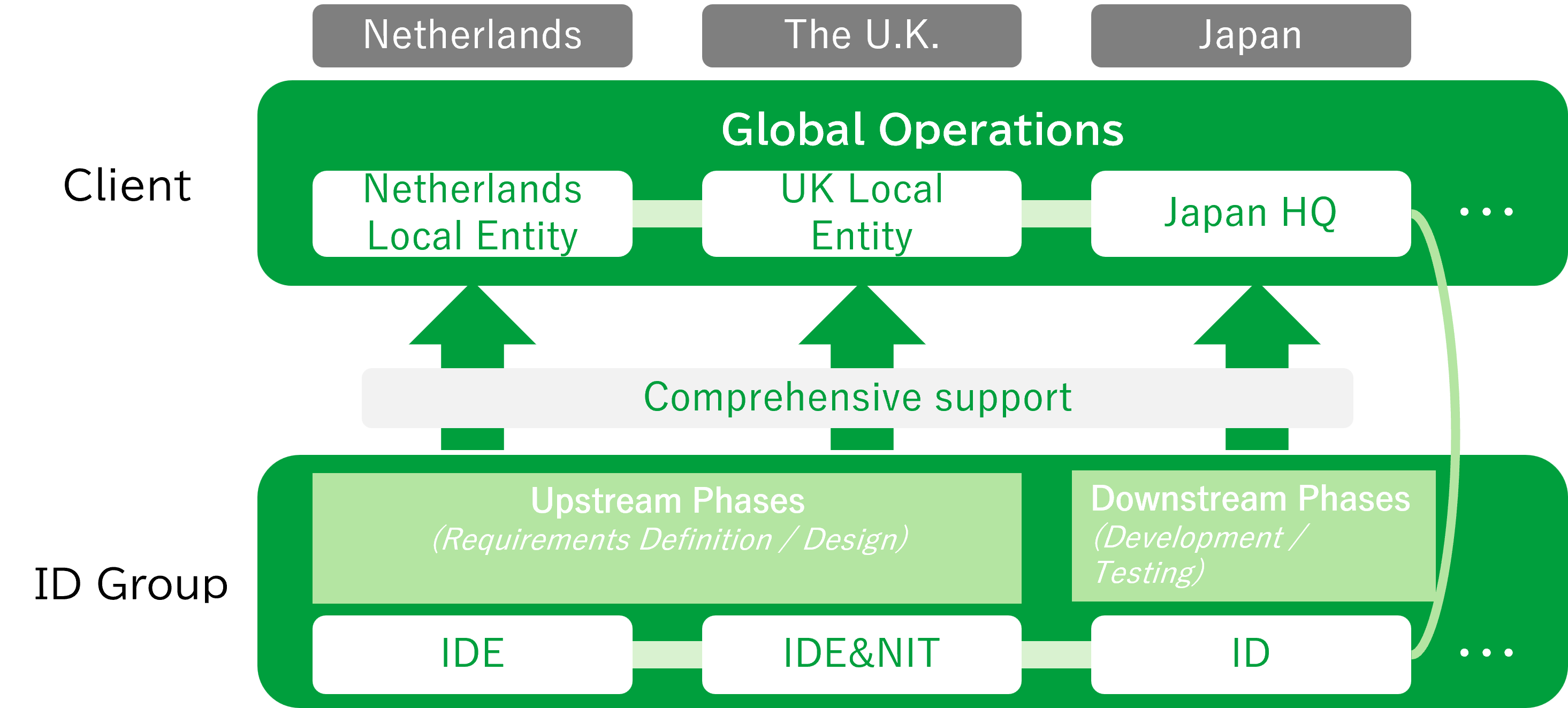 Leveraging the ID Group’s European network, we support system implementations aligned with our clients’ global strategic policies—ranging from Japan headquarters-led rollouts to standalone deployments of locally optimized systems across Europe.